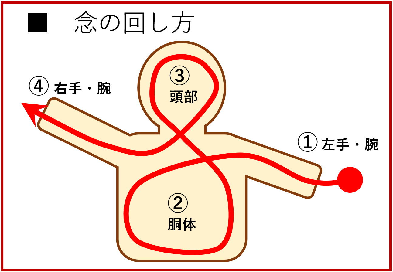 | ■ | 基本的な念の回し方のイラストです。 キャプチャーや、印刷などして、ご利用ください。 ※ クリックすると大きく見ることができます ![]() |