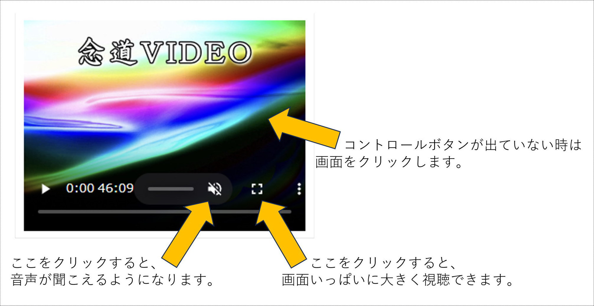 | ■ | 動画が映った最初は、安全のため、ポーズ(一時停止)・音量0(ゼロ)になっています。 コントロール部などをクリックしてから、再生、音量調整を行ってください。 ※ クリックすると大きく見ることができます。 ![]() |
